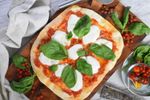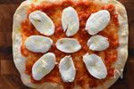 【トッピングして焼く】 焼いた生地に※トマトソース・大さじ4、1.5cm厚に切ったモッツァレラチーズをのせ、全体にオリーブオイル・小さじ2をかける。 230℃に余熱したオーブンで5分~7分、チーズがとろけるまで加熱する。 ※「トマトソース」のレシピはこちら→oceans-nadia.com/user/100026/recipe/373075 |