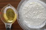 【捏ねる】 A 薄力粉 150g、砂糖 小さじ½、塩 小さじ¼ を混ぜ、合わせたB水 70ml、オリーブオイル 大さじ1 を少しずつ注ぎながら全体がまとまるまで2分程度捏ねて生地を作る。 |