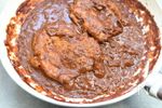ダークチョコレート(カカオ70%)を加えて溶かし、❶の鶏もも肉を戻し入れて弱火で3分煮る。 | |