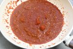 【煮る】 B トマト缶 1缶(400g)、水 100㎖、コンソメ顆粒 小さじ1、塩 ひとつまみ を加えてトマトを潰しながら中火で5分煮込む。 |