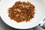 【炒める】 同じフライパンで、玉ねぎ、にんにく、レーズン、素焼きアーモンド、A チリペッパー 小さじ1、シナモンパウダー 小さじ¼ を加えて中火で玉ねぎがしんなりするまで炒める。 |