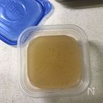 炊飯器に残った汁はこして容器に入れ取っておきます。 スープや煮物など作る時に役立ちます。 |