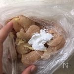 更に片栗粉を入れて ビニール袋の上からしっかりもみこみます。 |
