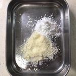 1時間以上経ったら バットやお皿にB 粉チーズ 大さじ2、片栗粉 大さじ2 を混ぜ合わせささ身全体にまぶします。 |