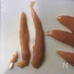 鶏のささ身は縦長半分に切って筋を取ります。 | |