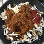 焼き色がついたら 根を切り落として好きな大きさに切ったしめじとエリンギをハンバーグの上に満遍なくのせ C デミグラスソース缶 1個、ケチャップ 大さじ2、オイスターソース 大さじ2、みりん 大さじ2、砂糖 小さじ2 をそれぞれ回し入れたら一度沸騰させてから蓋をして弱火で15分くらい煮て味を整えたら出来上がり♡ |