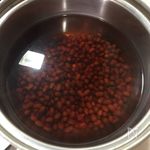 ◯小豆は茹でこぼした後小豆の4倍くらいの水で茹でて下さい。3合のメモリくらいまでの茹で汁になると思います。