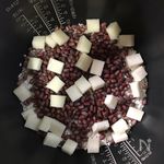 小豆と茹で汁が冷めたら 釜にお米と一個を16等分した切り餅に 小豆を入れます。 |