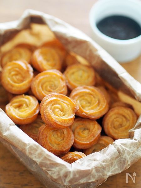 スペイン生まれの棒状の揚げ菓子「チューロ」を、食べやすくアレンジ。生地を一口大の渦巻き状に絞って作るので、揚げるのもラクちんです。