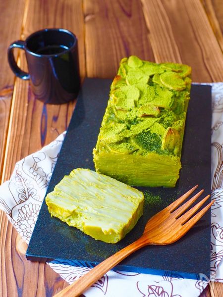 SNS映え抜群の人気スイーツ「ガトーインビジブル」。カットするとサツマイモがびっしり重なっているというインパクト大の見た目はもちろん、食べ応えもばっちり! 抹茶の風味とさつまいもの甘みがよく合います。さつまいもは出来るだけ薄くスライスするのがポイント。1枚1枚に生地を染み込ませるように混ぜてから、パウンド型に詰めましょう。