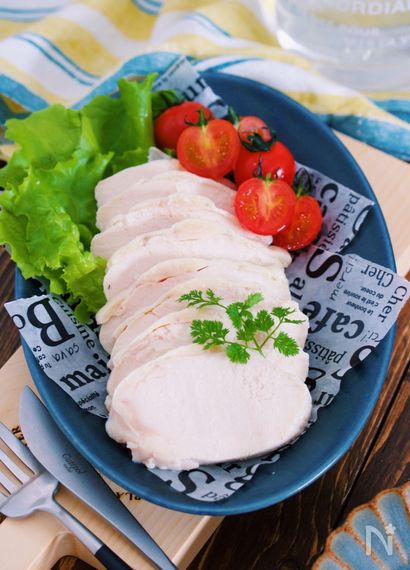 鶏むね肉レシピの定番とも言える鶏ハム、塩鶏、サラダチキンなどは、簡単ながらメインメニューとしても楽しめ、料理の具材としても活用できる大活躍メニューです。シンプルなだけに、いかにジューシーに仕上げるかがおいしさのポイント。ここでは異なる方法で作る4つのレシピを紹介します。