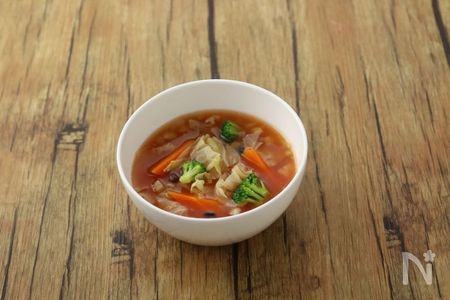 寒い夜にぴったりの野菜たっぷり具だくさんのミネストローネ。食物繊維が豊富なのも嬉しいポイント。