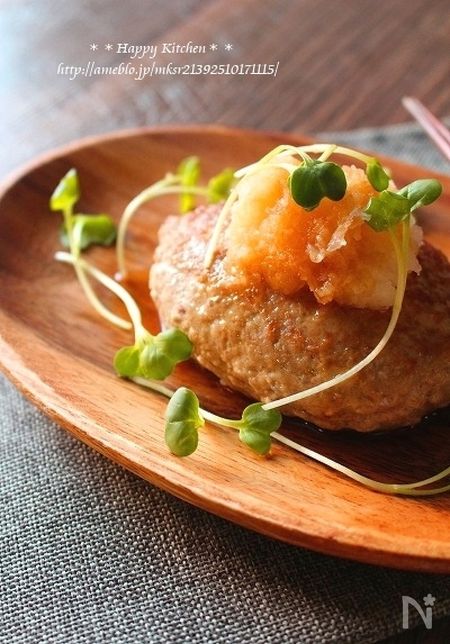 ●たっきーママさんの材料3つで!シャキシャキ蓮根とおろしポン酢のハンバーグ