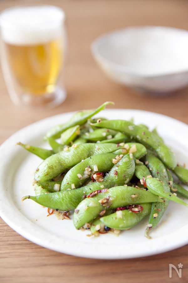 しびれる辛さの花椒と、にんにくの香りがたまらない簡単おかず。枝豆はごま油をひいて炒め、風味豊かに仕上げましょう。作っている間にも漂ってくる食欲をそそる香りがたまりません♪ ビールがすすむ絶品おつまみです。