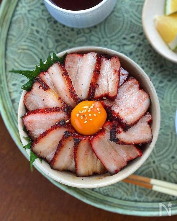 ほかほかご飯にチャーシューをたっぷりのせていただく、大満足の簡単レシピ。ご飯にはチャーシューのたれ、ねぎ、ごまを混ぜておき、青じそをのせてさっぱりと風味豊かな仕上がりに。