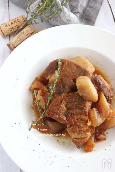 豚肉の表面に強火で焼き色を付け、調味料とタイム、クローブを入れて煮込みます。オイスターソースとマーマレードの組み合わせで、フルーティーでコクのある味わいに仕上げた、ワインがすすむ一品。