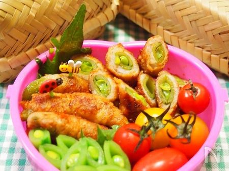 ●『お弁当に♡スナップエンドウの肉巻き焼き』