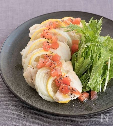 シンプルな味付けなのにうま味たっぷりのサラダチキンは、アレンジも自由自在! サラダだけでなく、麺類や丼物にも使えます。さらに、追加する食材の組み合わせによって、健康や美容にうれしい効果をプラスできるんです♡ 疲労回復効果をアップさせるレモンと、抗酸化作用で美肌・美白にも効果的なトマトを添えていただく「塩レモン蒸し」、豆板醤のカプサイシンでよりダイエット効果を高める「サラダチキンの彩り棒棒鶏」など、簡単アレンジでいろんな料理に使えます。