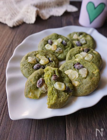 和風アレンジで大人の味わいに。抹茶香る甘納豆チーズクッキー