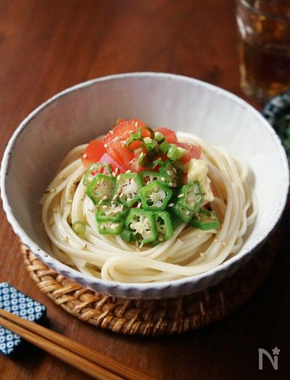 オクラとトマトの冷やしうどん