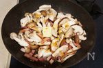 フライパンにサラダ油少々(分量外)をひいて中火で熱し、ニンニクのみじん切りを炒める。香りが立って来たらベーコンを炒める。 | |