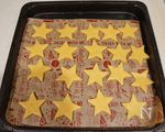 めん棒で生地の厚さを5~7ミリ程度に伸ばして好みの型でくり抜く。クッキングシートを敷いた天板に並べる。 | |