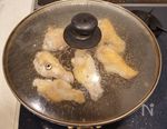 表面に焼き色が付いたら蓋をして、弱火で5分ほど蒸し焼きにする。 | |
