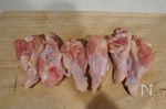 鶏手羽元は、骨に沿って包丁で浅く切り込みを入れる。塩コショウをふり、手でもみ込むようにしてなじませる。 | |