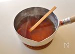 【うどんつゆを作る】 鍋にA 出汁 400㎖、醤油 大さじ2、みりん 大さじ2、酒 大さじ1、塩 少々 を入れて火にかけ、うどんつゆを用意する。 |