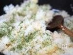 バターライスを作る。フライパンにバターを熱し、溶けてきたところに炊いたご飯を加える。パセリも加えほぐしながら炒める。 | |