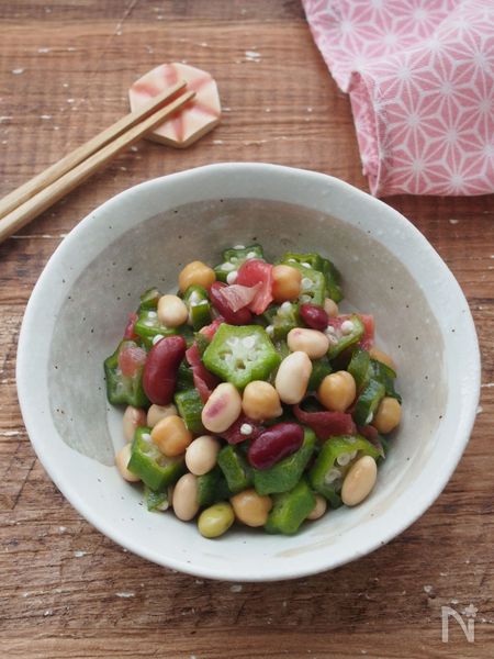 たんぱく質と食物繊維たっぷり!オクラと豆の梅風味マリネ