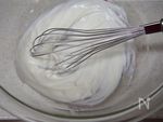ボウルにヨーグルトと砂糖を入れて、なめらかになるまでよく混ぜる。 (いきなり牛乳と混ぜるとヨーグルトのつぶつぶが残る場合がある。) |