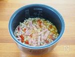 炊飯器に洗ったお米を入れて、2合の目盛りまで水を入れ、そこから水を約大さじ2捨てる。(野菜から水分が出るから) | |