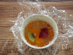 小さい容器にラップをしき、みかんの缶詰(果実)、キウイフルーツ、冷凍ベリーを少しずつ入れ、1を約大さじ3流し入れる。 | |