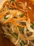 玉ねぎは薄切り、にんじんは千切りにする。 | |
