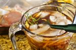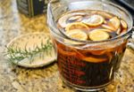 熱湯にティーバッグを入れ、覆いをして10分、じっくり抽出します。 熱いうちに、ブラウンシュガー、塩を入れて混ぜ溶かします。 玉ねぎからローズマリーまでの材料をすべて混ぜ入れ冷まします。 |