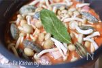 鶏肉、しめじを乗せてから、塩抜きしたあさりを加えて炊飯スタートする ※あさりは口を上にして刺すように置くとキレイに開きます。 |