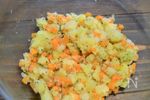 鍋に水とじゃがいもを入れゆで、ゆで上がる2分ぐらい前に人参も加え、一緒にゆでザルに上げ水気をきりボウルに入れ、潰したらA 塩 ひとつまみ、こしょう(粗びきこしょう使用) 少量、鶏がらスープの素 小さじ1 を混ぜる。 |