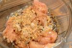 ボウルに①とA かつお節 2g、料理酒 大さじ1、醤油 小さじ2、塩こしょう 各少量 を入れ、良く揉み込み10分おき、片栗粉をまんべんなくまぶす。 |