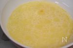 ボウルにA 薄力粉 100g、コーンスープの素(カップスープ) 1袋、砂糖 小さじ1 を入れ、ホイッパーでサッと混ぜ合わせ、B 水 150cc、油(オリーブオイル使用) 小さじ1 を加え粉っぽさがなくなるまで混ぜる。 |