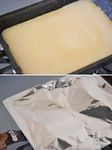 卵焼き噐にサラダ油をひき中火で熱し、 濡れ布巾の上に置き粗熱を取り、 ①の半量を流し入れアルミホイルを被せ弱火で13分焼く。 |