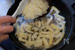 しいたけが柔らかくなるまで、ときどきかき混ぜながら煮込む(中火5分)、そのあと刻み厚揚げも入れる | |