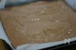 天板に生地を流し入れて平らにする。最後にボウルに残った生地はふくらみにくいので、端に入れるとよい。ココア生地は こげないように注意して、190℃に下げて10分焼く。 | |