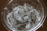 海老は殻をむいてわたを取りのぞき綺麗にあらった後、キッチンペーパーで水気をふきとります。 ボウルに入れA 塩 少々、片栗粉 大さじ1 をまぶします。 |