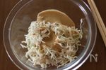 器に他の野菜と、(2)をバランスよく盛り付けます。 お好みで食べる辣油等をおかけください。 |