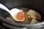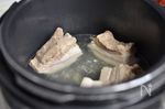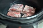 1の豚肉を取り出し、煮汁は濾して200ml計量して豚肉とともに電気圧力鍋に戻す。(材料Bの豚肉のゆで汁として記載) | |