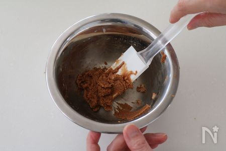 常温に戻した無塩バターを滑らかになるまで混ぜ、フィリング用の砂糖とシナモンパウダーを混ぜ合わせます。