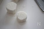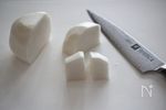 広い切り口を上にして、角を落として丸みをつける。 | |
