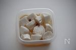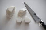 カブは皮をむいて、根の部分を平に切り落とし、8等分に切る(厚いいちょう切りにします)。それぞれがなるべく均等な大きさになるように。 | |