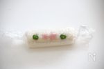 両端をキャンディーのようにきゅっと絞る。お好みでマスキングテープやリボンで止めてもOKです。長いようならラップを切りそろえてください。 | |